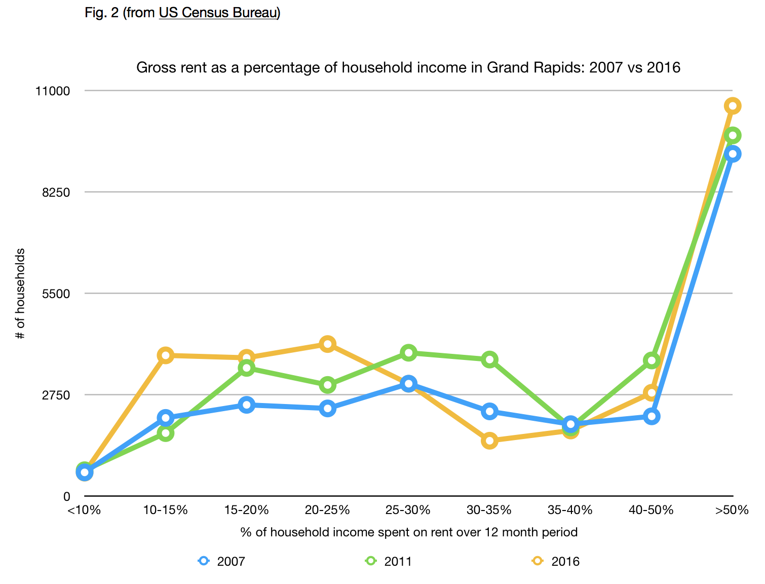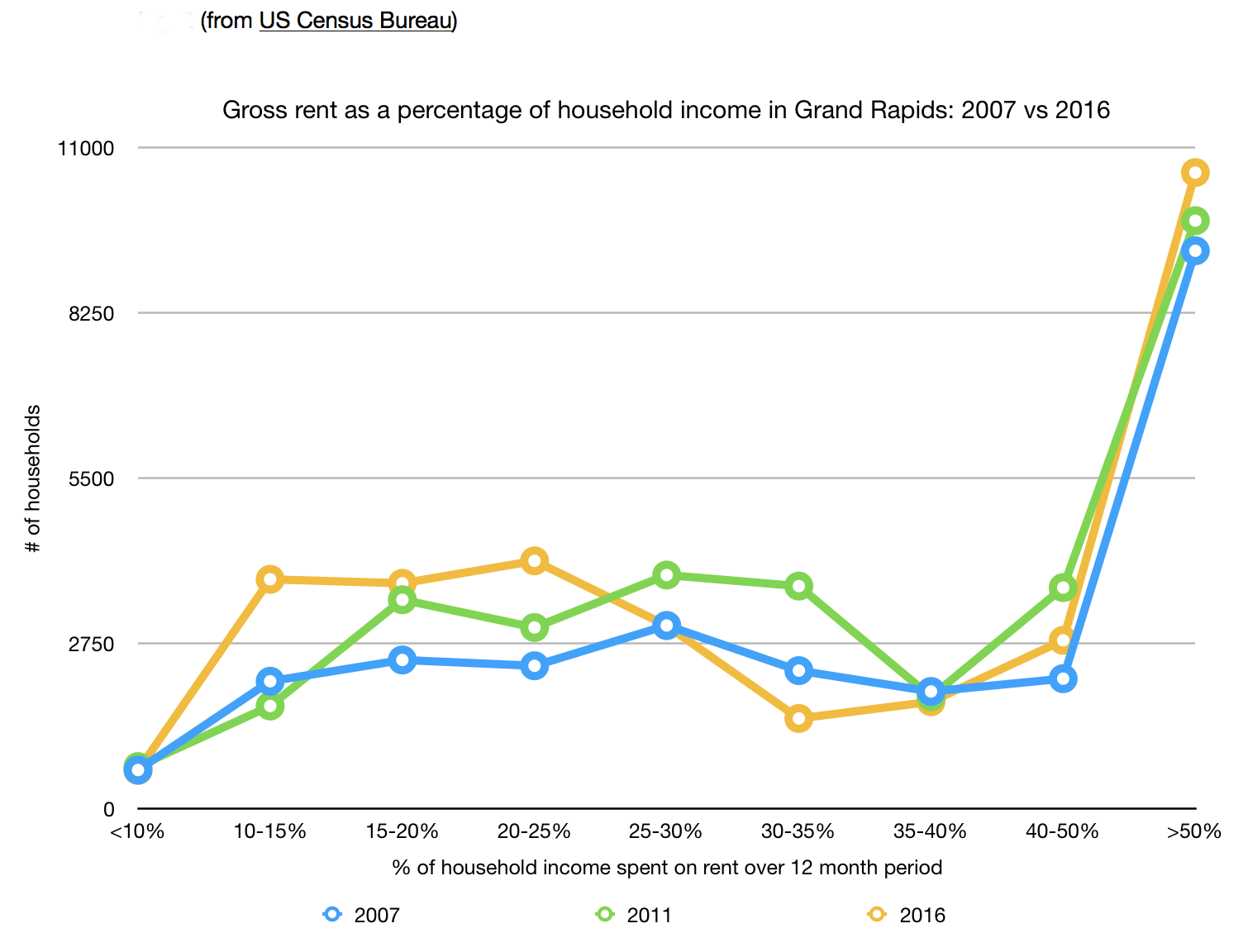This, combined with home ownership costs that are rising steadily across Grand Rapids, essentially means that it’s harder than ever for poor working families to afford adequate housing.