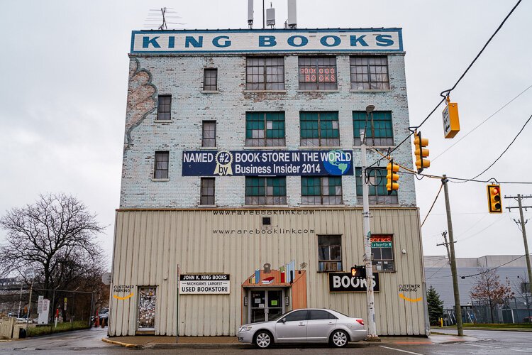 Afterward, the local shopping continues at John K. King Used & Rare Books, a longtime staple in the Detroit literary community and beyond. “The first time Stacy and I visited Detroit, long before I lived here, it was because we’d heard about John K. King Books,” Haimerl says. “No visit is complete without at least a run through their four floors of used books.” While Stacy heads to the sci-fi and rare sections, Haimerl browses the shelves with cookbooks and food memoirs.