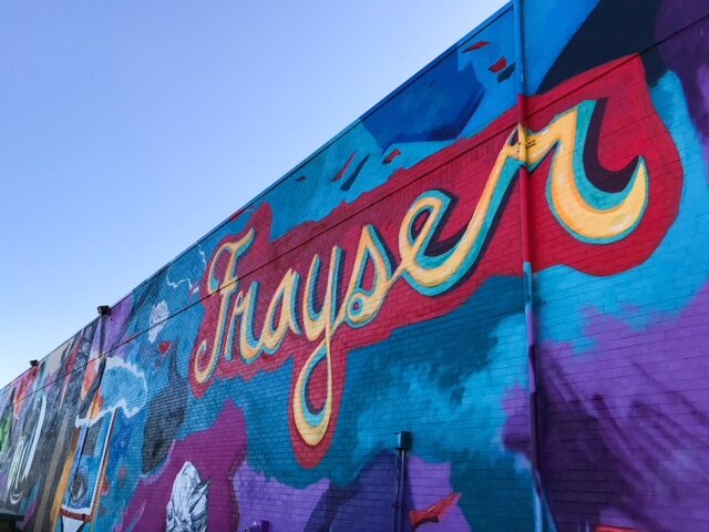 Bullock’s “Stand Up for Our Streets,” is a 6,000-square-foot comment on environmental justice that highlights the specific issues expressed by Frayser residents. It’s painted on the side of the Superlo Foods at 3327 North Watkins Street.