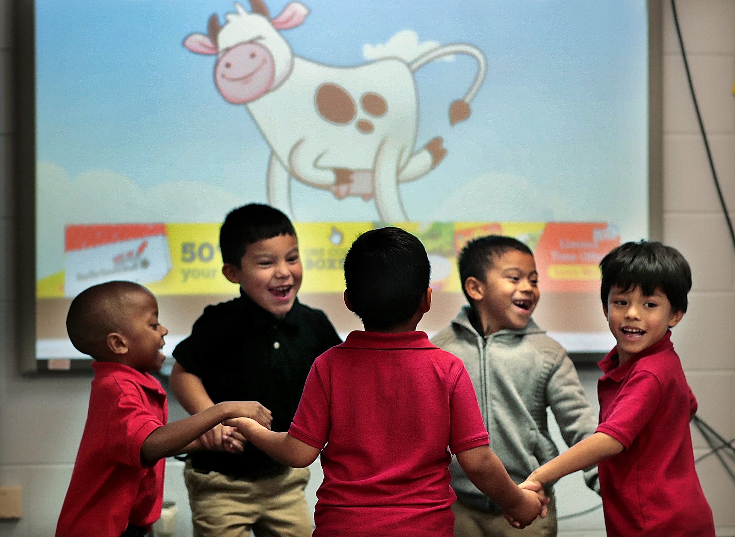 Because the curriculum is mostly taught in Spanish, some students may be slower to meet state proficiencies, but by the fourth and fifth grades, they’re outpacing the school’s non-optional students.