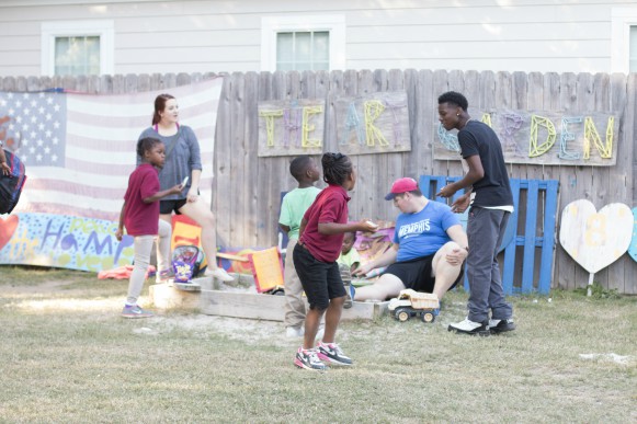 The Binghampton Development Corp. acquired the property from the Shelby County Land Bank. Harris talked a few friends into helping her purchase a shipping container to store supplies on the property. They spent a Saturday clearing the lot, and then Harris began coming by nearly every day.
