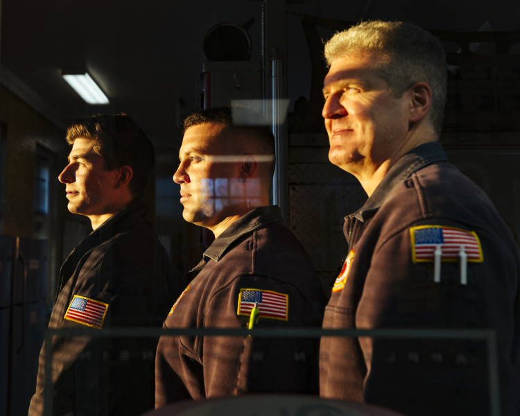 Three members of the crew of Fire Station 18. Left to right: Private Michael Pence, Private Brian Keller and Lieutenant Mark Johnson. (Ziggy Mack)