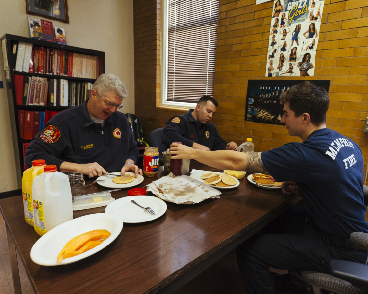 When not responding to an emergency, the crew’s afternoons and evenings are spent at the station.