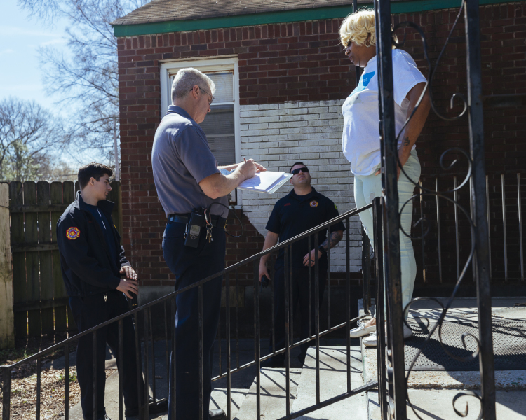 After training and chores, the crew heads out into nearby neighborhoods to meet with residents and perform commercial property assessments.