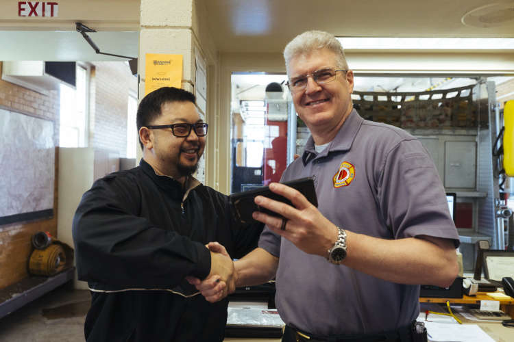 On this day, 46 year-old Mark Tye stopped by the station. A few weeks earlier, the crew of Station 18 responded to a 911 call. Tye was having a heart attack after a morning jog. The crew got Tye to the hospital where he received four heart stints and a good prognosis.