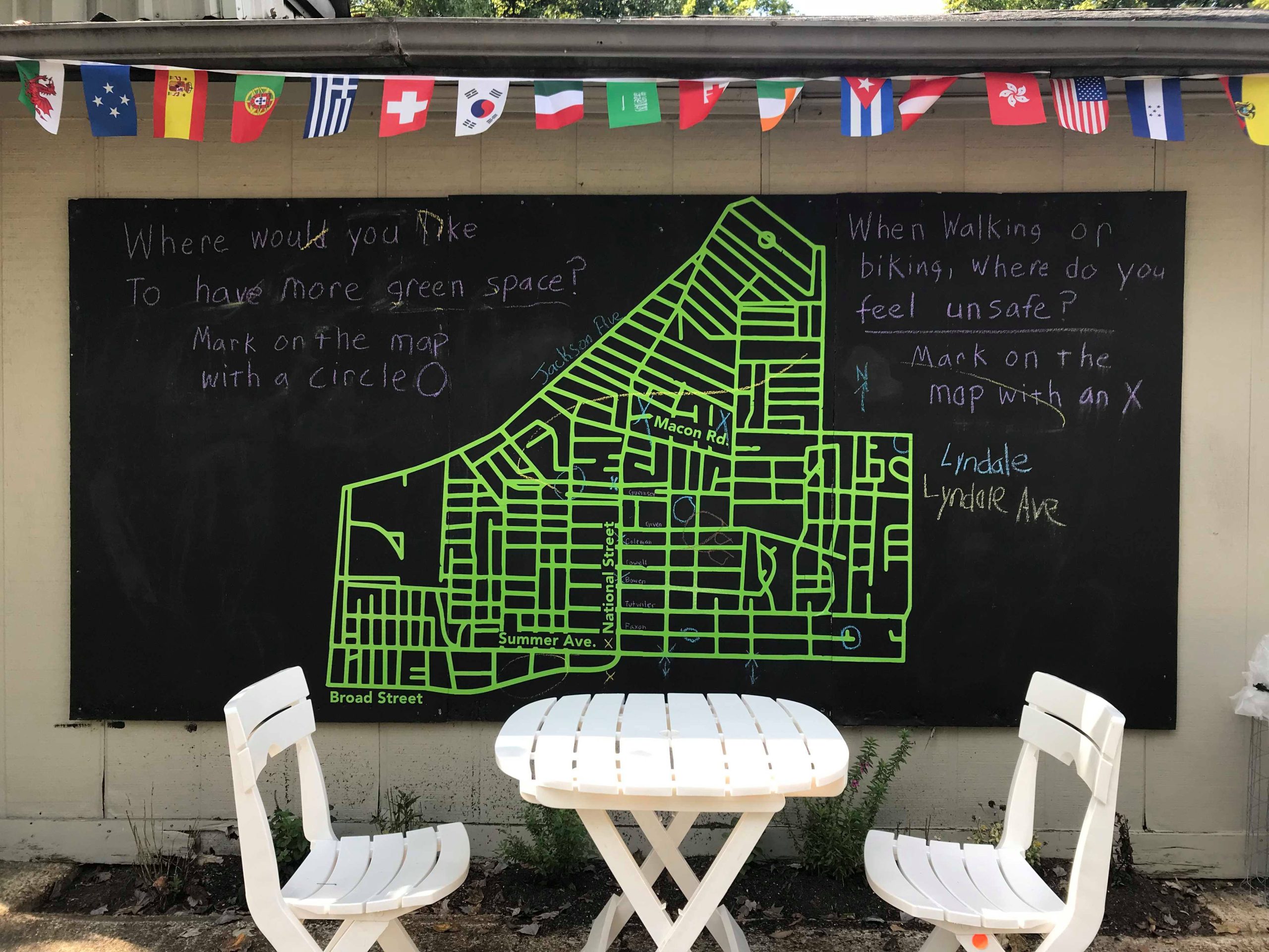 The studio is also a space for community members to help refine the design of the Heights Line — a proposed $3.5 million, two-mile linear park and greenline down National Street from Broad Avenue to Jackson Avenue — with interactive mapping and brainstorming sessions. So far they’ve suggested improvements to seating, lighting, greenery, and bike and walking paths.