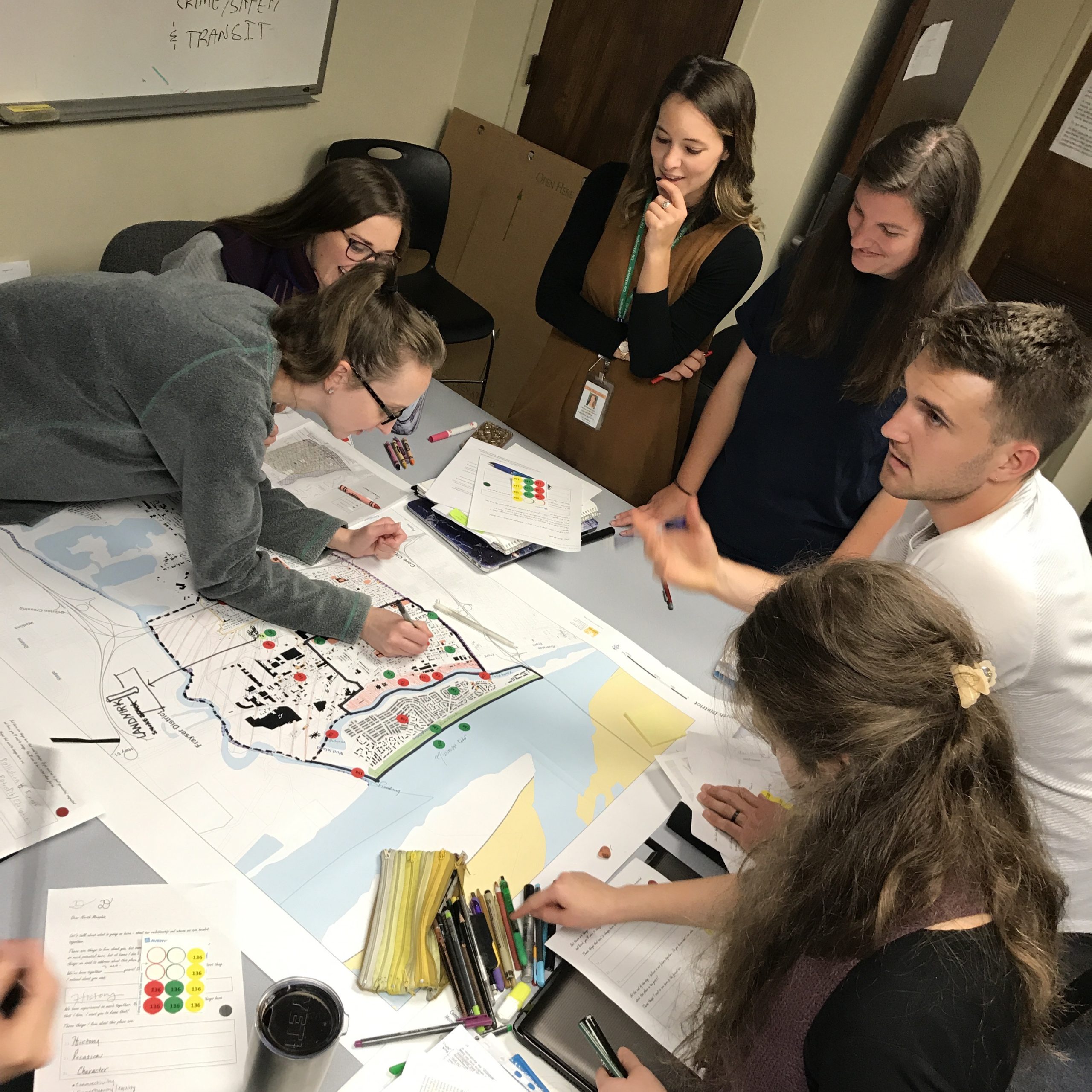 The graduate students toured neighborhoods across the city and conducted workshops where residents participated in asset-mapping exercises, using large maps to mark the neighborhood amenities, sites and resources they most value.