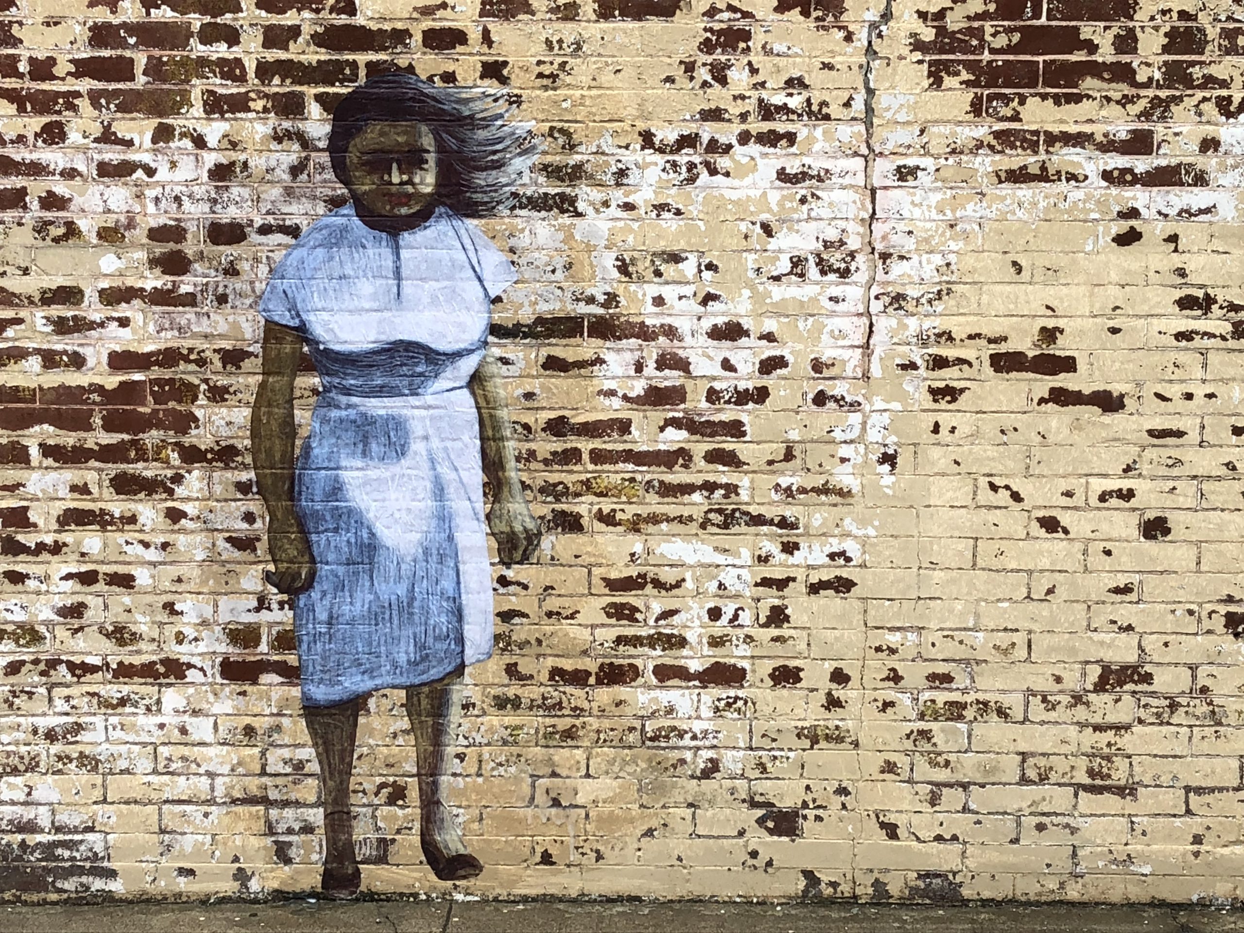 The Soulsville grandma is one of 21 “characters” pulled from larger works in the permanent collection of the Memphis Brooks Museum of Art that have been recreated on the sides of buildings across the city as part of the latest installment in the museum’s “Brooks Outside” series. The series started as an experiment two years ago during the Brooks centennial anniversary and has since become an annual linchpin of the museum’s programming.