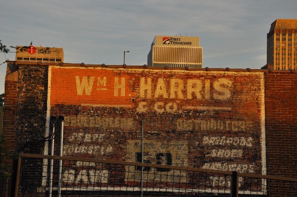 Ghost signs hang on to the sides of brick buildings in Memphis. An acute eye can show the changes in manufacturing and retail that read like a map across the façade of Memphis.