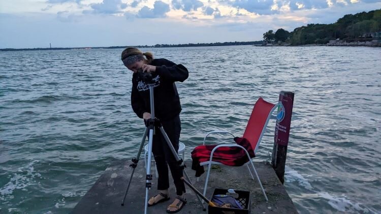 Harrington, who is working on her master’s degree in ecology in conservation biology, set up an infrared camera on Middle Bass Island in fall 2022 during the birds’ migration south, in spring 2023 for northern migration and again this fall. She started at the East Point Nature Preserve pier but then moved to an open area near the house where she was staying on the island due to wind and waves at the pier.
