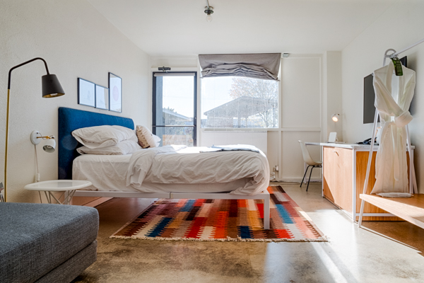 The hotel features other youthful elements such as an outdoor beer garden with an open bar and dining space that doubles as a small entertainment venue during warmer months.