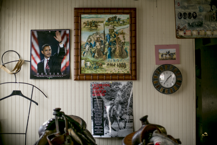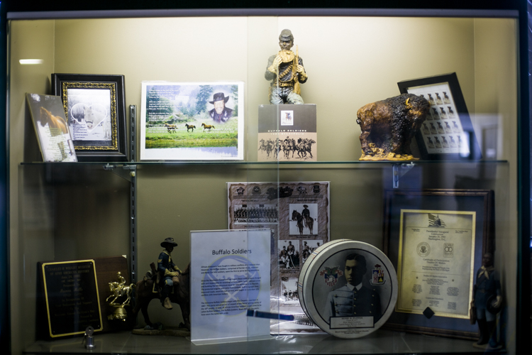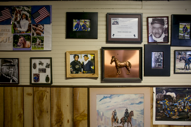 Inside the barn, photos of the BSHA line the walls. There are pictures with former Mayor Dennis Archer, news clippings of the group, statuaries of the 9th and 10th Cavalry soldiers, and posters celebrating Buffalo Soldiers throughout history. These are just some of the many mementos that cover every inch of the center.