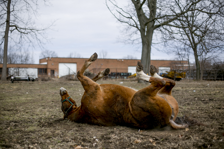 The late 19th-century barn that houses the association is nestled in a quiet corner of Rouge Park. The facility had housed the Detroit Police Department’s Mounted Unit until its disbanding in 2005. Now it holds eight horses that live there year-round. Two barn cats, the affectionate Ceasar and skittish Bob, are tenants there too. And hawks and blue jays are also regular attractions, as is a family of coyotes frequently visit from the nearby hills.