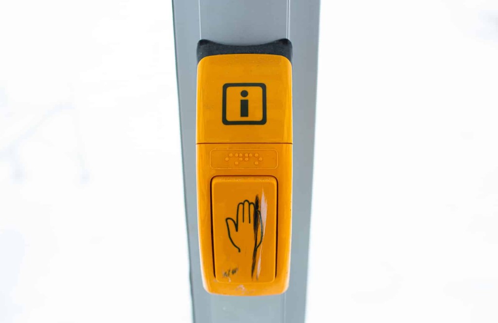 When pressed the button enables an audio readout of the timetable. Photo by Rachel Von Art LLC