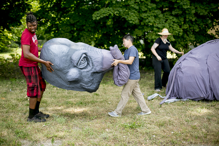 The artists and performers at Carrie Morris Arts Production, or CMAP, are creating these behemoths from scratch, using wood and paper, old nylons and glue. These life-size puppets will be walking on stage for four performances at the New Center Park amphitheater July 27 to 29.