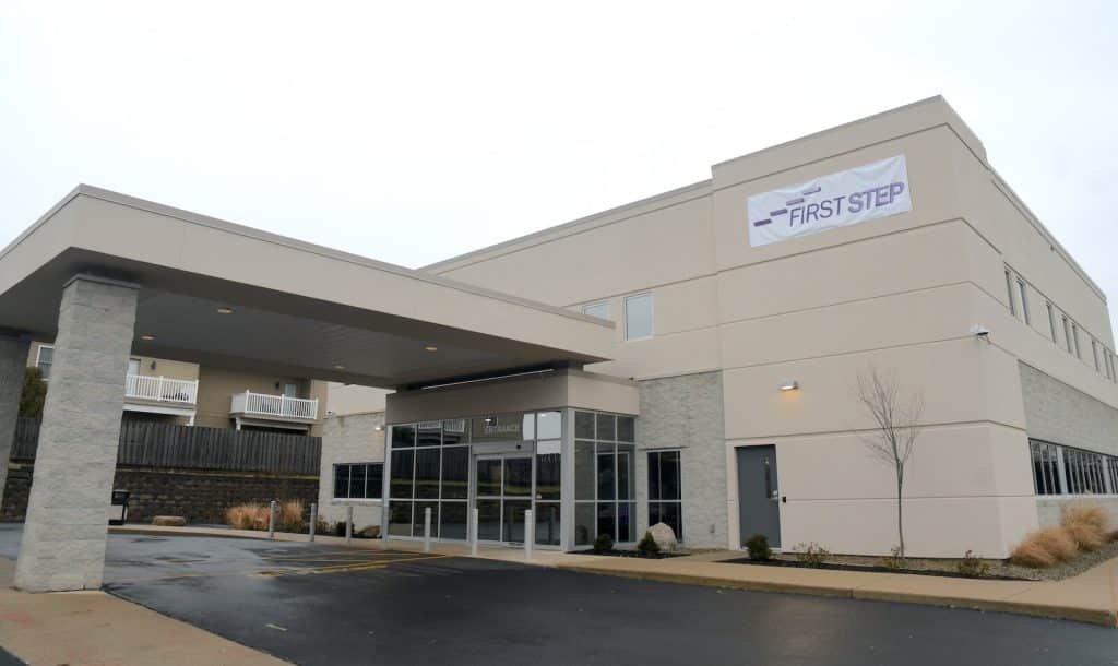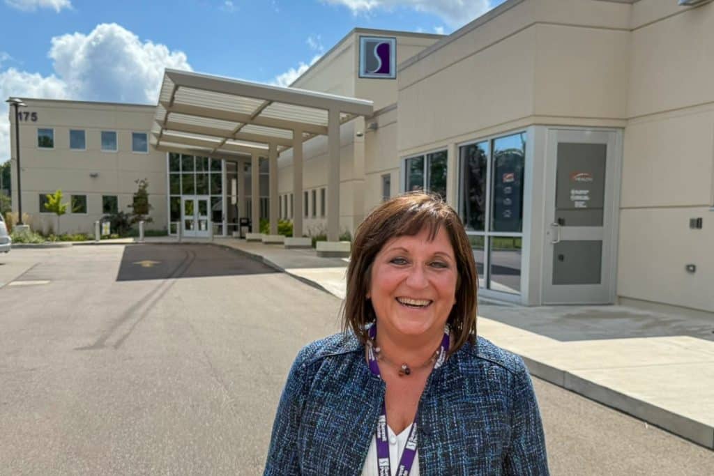 Jeannie Goodrich outside of Summit Pointe First Step psychiatric urgent care center.