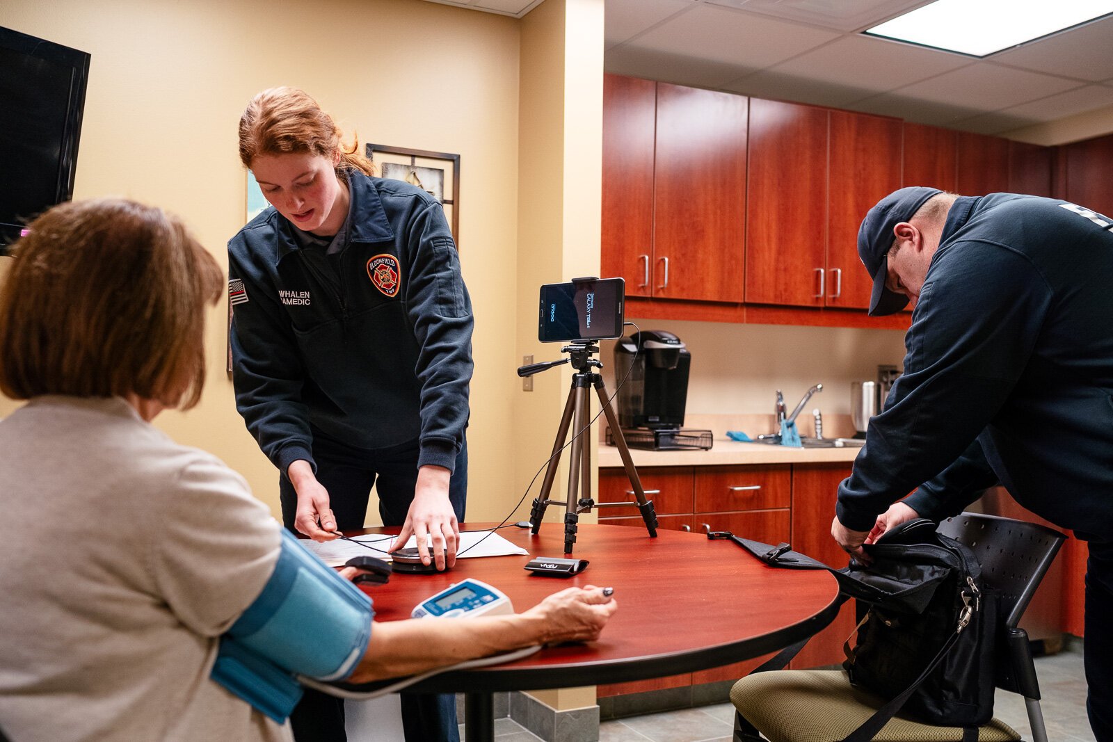 Visiting high-risk patients recovering from conditions like congestive heart failure, diabetes, COPD, sepsis, or pneumonia, the community paramedics take vitals and may check weight gain, listen to lung sounds, or run an electrocardiogram (EKG).