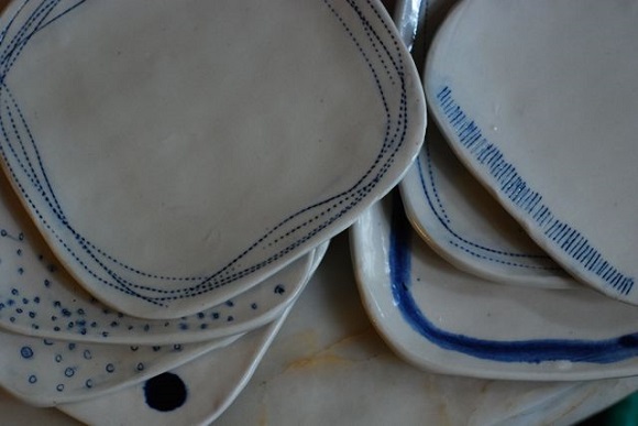 Working from her home studio six hours a day, Melissa McGuire Bridgman is one of many local potters who makes a living with her craft through Bridgman Pottery. She began throwing clay after receiving several pieces of McCarty’s pottery as wedding gifts. She was enthralled with the idea of making her own pieces and did it as a hobby while job-seeking, a quest that led to a three-year stint as a teaching artist for pottery with the Center for Arts Education. Subsequently, she began working from home on a part-time basis while she served as a teaching artist in the Education Department of the Brooks Museum of Art. In 2009, Bridgman switched to working as a full-time artist from her home studio and now focuses on functional porcelain tableware inspired by traditional blue and white china.