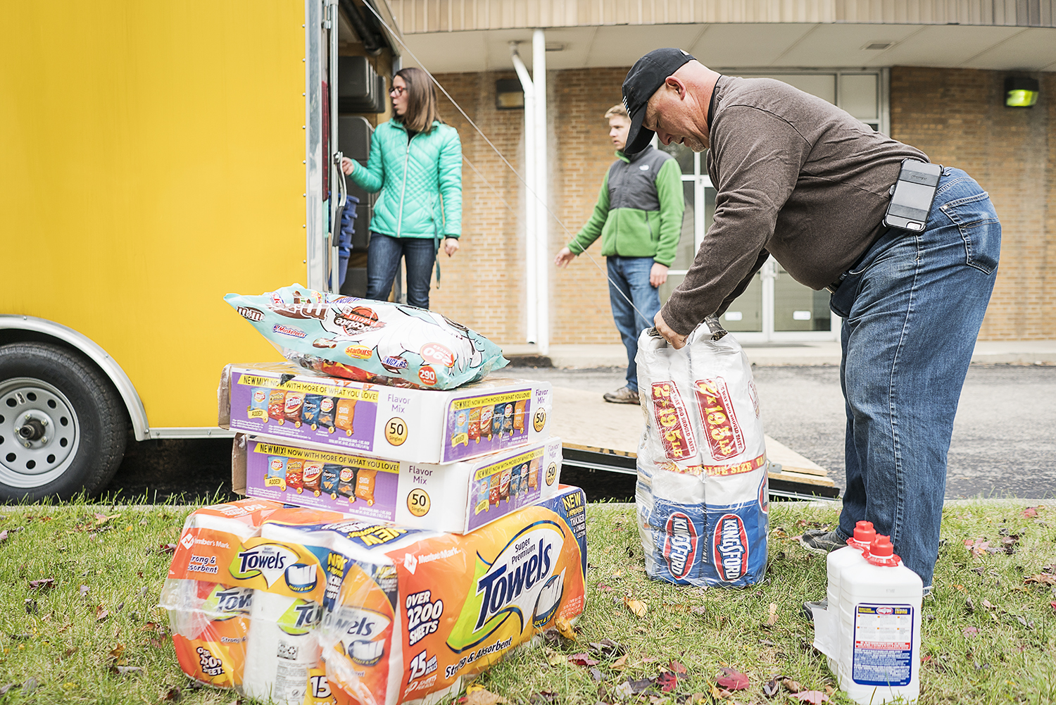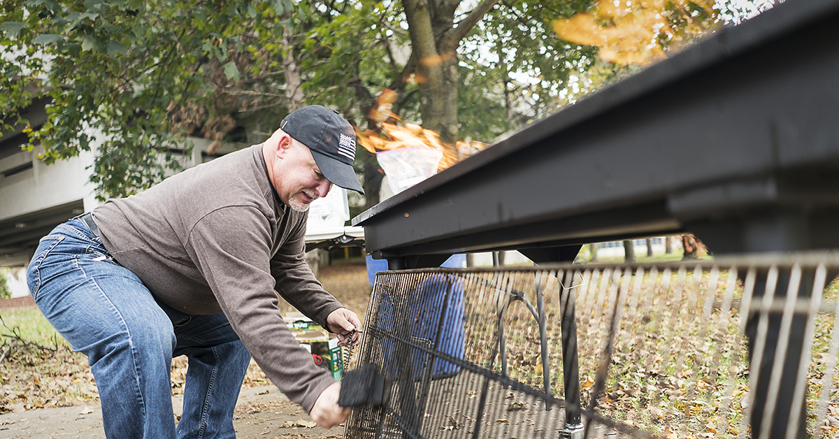 The prep work starts early in the morning for the volunteer crew. Picnic tables are hefted into a yellow trailer just outside the garage at Riverside Tabernacle Church. The trailer is a relatively new, and welcomed, addition. Strategically planned and outfitted by Elevate Detroit, the trailer accommodates nearly all of the necessities for the cookout. This is the first time the crew will be bringing picnic tables—yet another effort to promote togetherness and community.