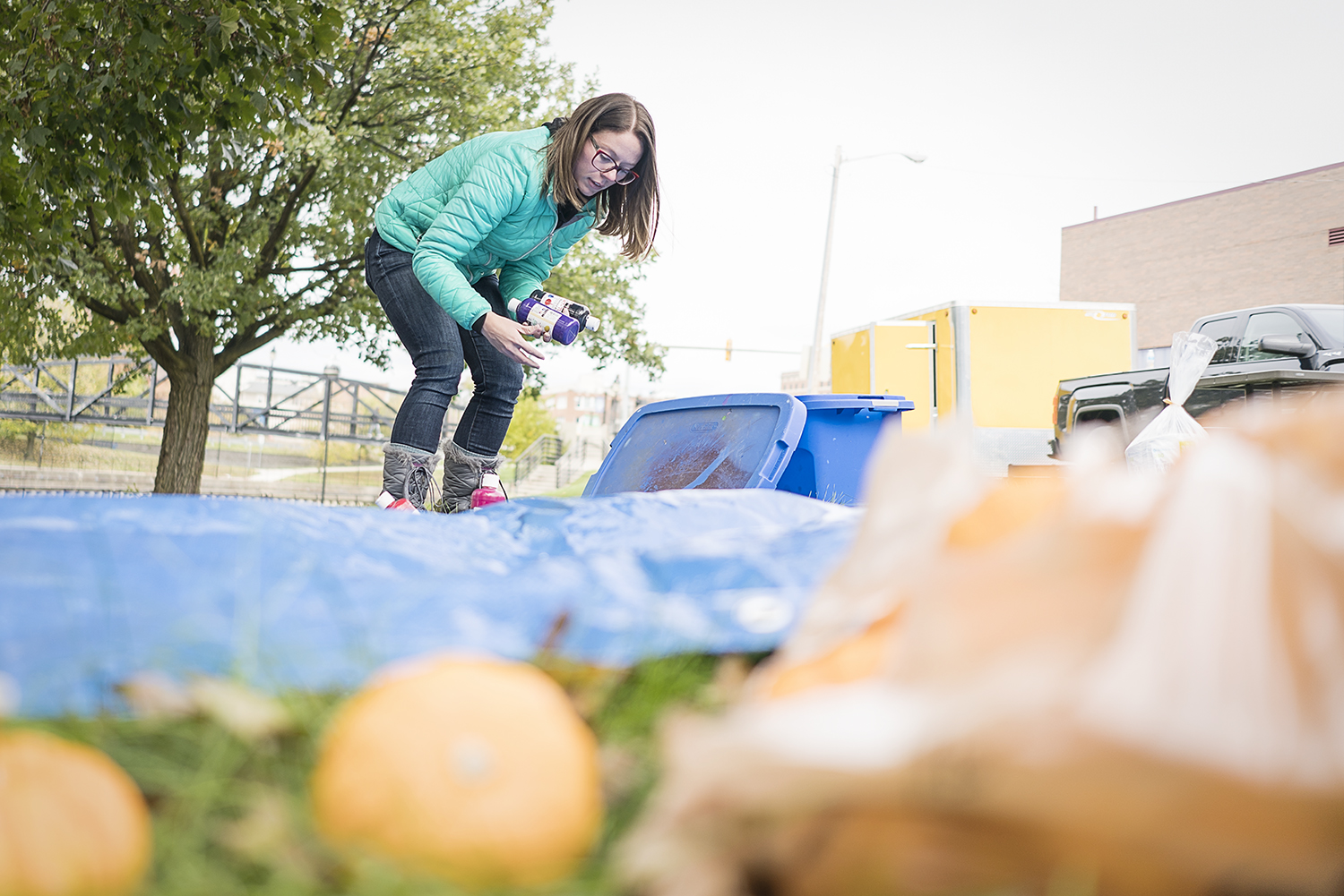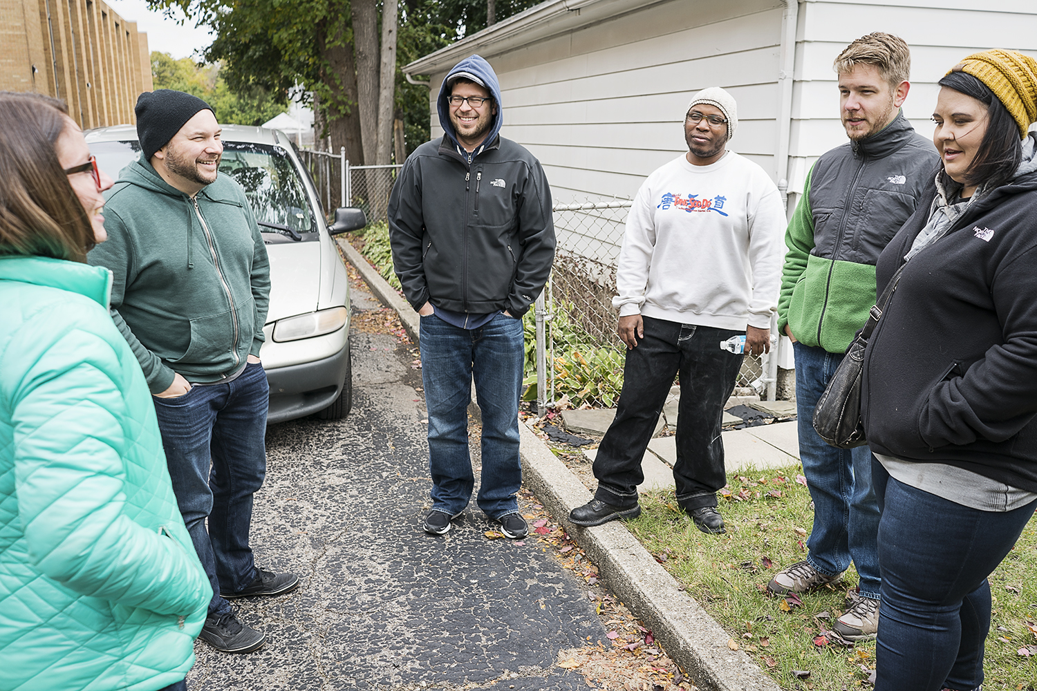 A group of volunteers, brace against the first chill of the year. The group includes about a dozen mostly 20- and 30-somethings who bring food, fun, and friendship to downtown Flint once a month, no matter the weather. It is their gift to the community they love, their one small way to make a difference.