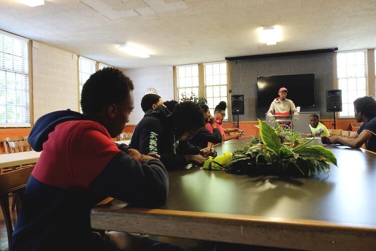 FLINT, Michigan — It’s 9 am on the main floor of Joy Tabernacle Church and there are already several tasks to be accomplished between the several young men seated. A crew of 12 make up the Flint Grounds Crew, young men 15 to 22 years old. They sit along the long table, chatting amongst themselves and preparing for a full day of cleaning and landscaping.