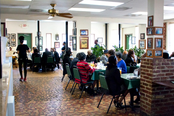 Each wall is covered in photographs and news clippings, detailing the family members who have served up meals throughout the years and celebrities and community members who have eaten there.