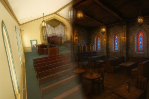 She is doing much of the redecorating and plans a medieval-styled atmosphere that will complement the existing ornate stained glass windows.