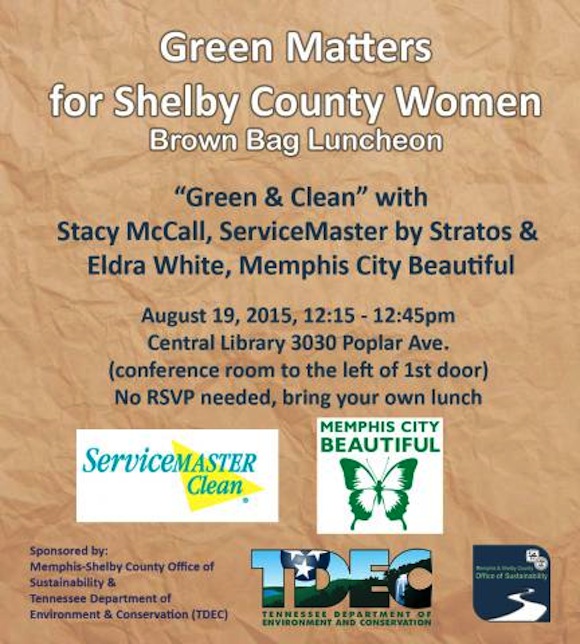 Join women with interests in sustainability for networking for a brown bag lunch. Guest speakers will be Stacy McCall of Service Master by Stratos and Eldra White of Memphis City Beautiful. No RSVP needed. Click here for more details.