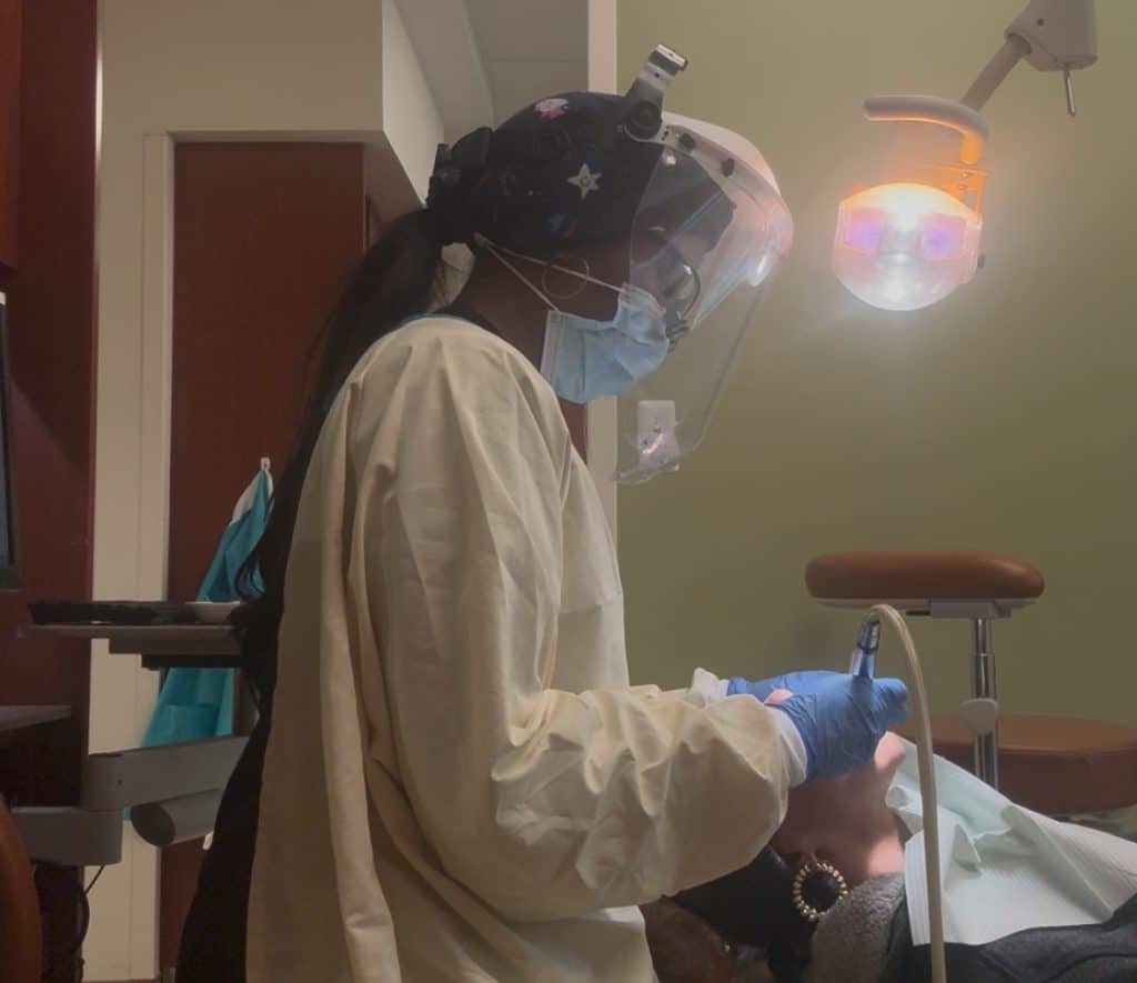 “We can pretty much do it all,” she says. “But what I see most are extractions, fillings, and dentures.”