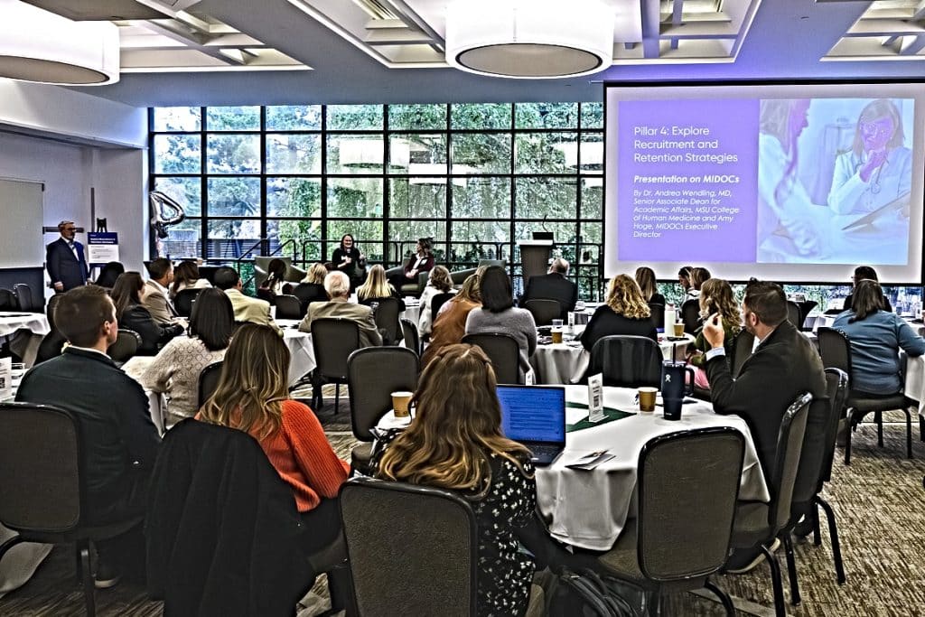 To grow Michigan’s health care workforce, the Michigan Health Council Workforce Plan recognizes that retention is as important as recruitment. People working in health care often experience burnout due to excessive workloads, emotional intensity, administrative burdens, and lack of organizational support, according to a U.S. Department of Health and Human Services report.