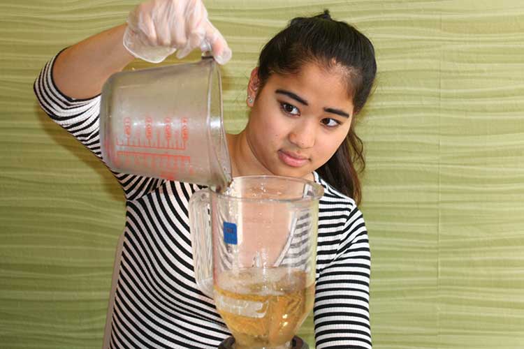 “We let them sample and taste it so they can see how much fun it is and how tasty it is to juice their own herbs.”