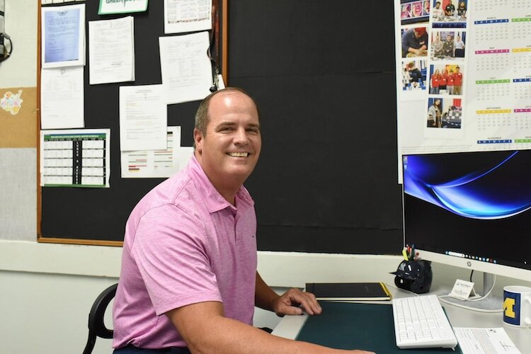 Superintendent Ben Ohlemacher is in his third school year at Kelleys, commuting daily by the Kelleys Island Ferry or by small plane from the airport in Port Clinton to the island.