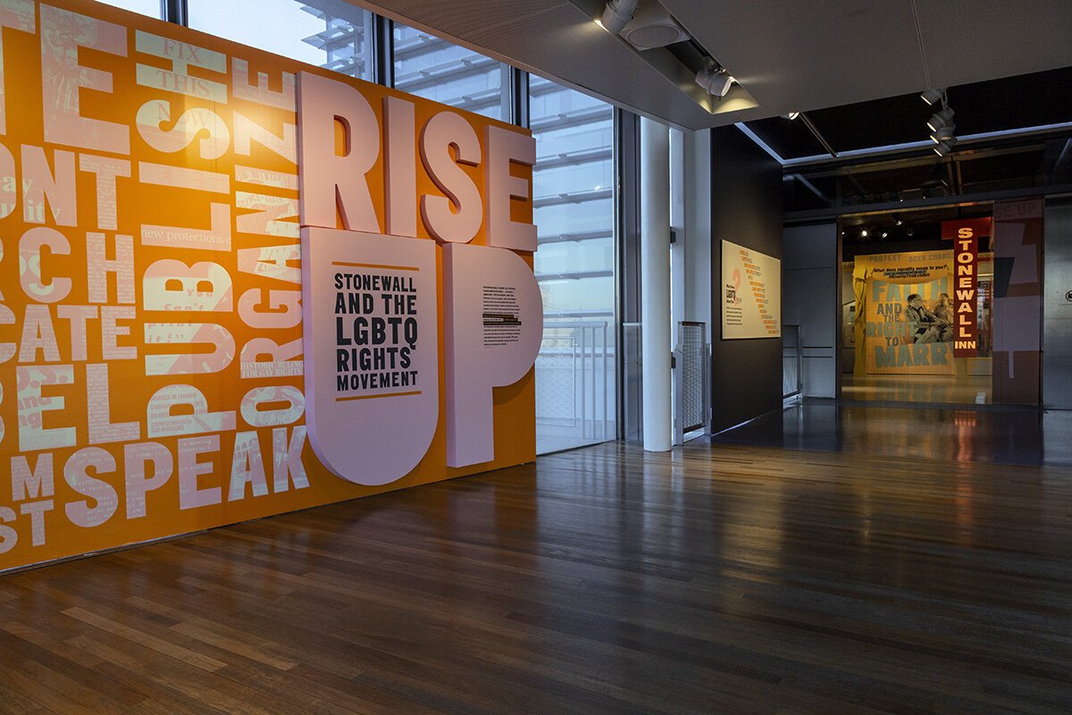 “Rise Up: Stonewall and the Civil Rights Movement” is a national touring exhibit curated by the Newseum in Washington, D.C. “Rise Up” tells the story of the police raid of the Stonewall Inn in New York City, an event broadly viewed as a turning point in equality and civil rights for LGBTQ Americans. Artifacts include Martina Navratilova’s tennis racket, the gavel used by Nancy Pelosi to repeal “don’t ask, don’t tell,” a campaign poster for Harvey Milk, and more.
