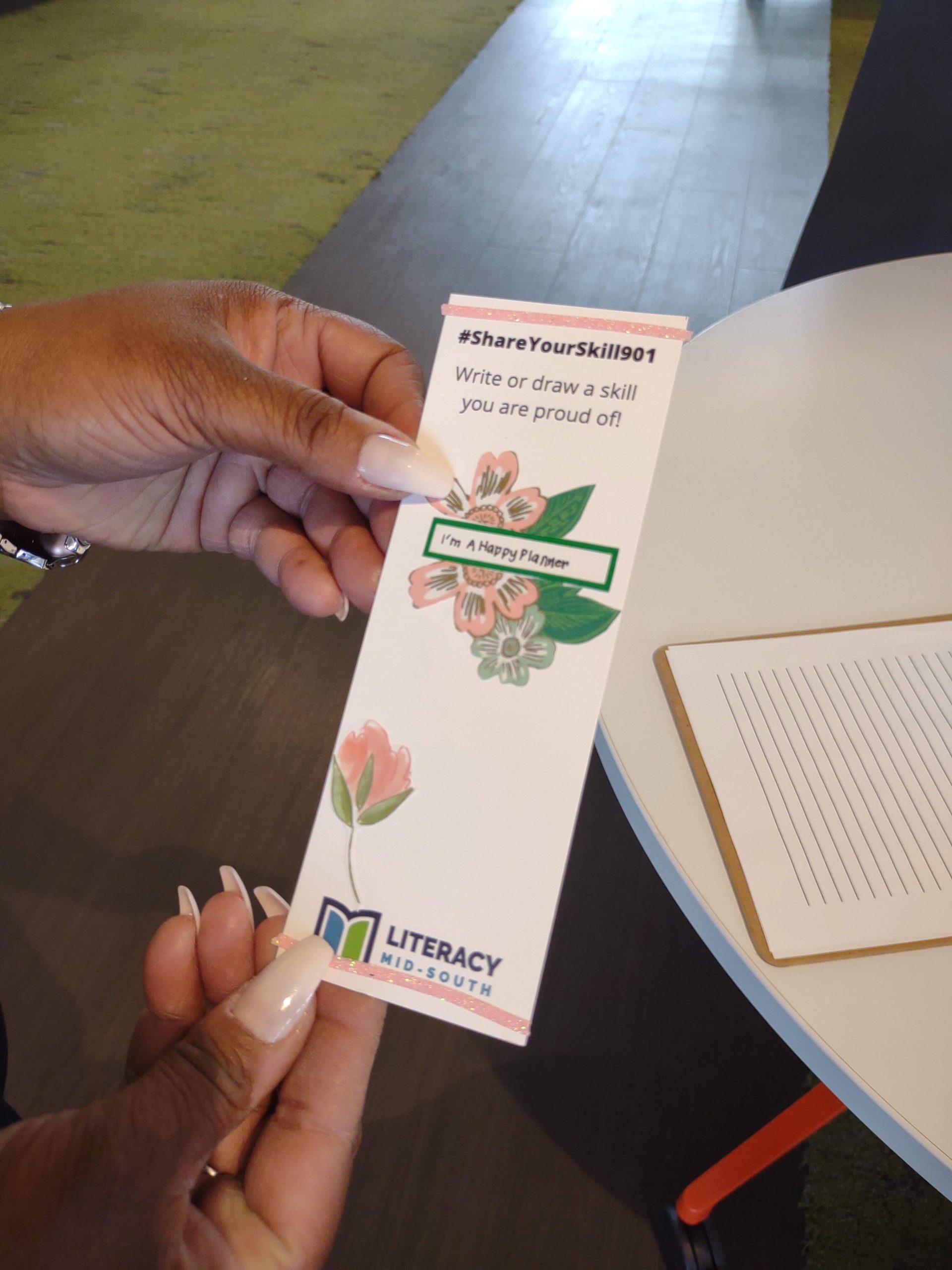 In May, #ShareYourSkill901 has bookmark stations at the Benjamin L. Hooks Central Library and the Raleigh Library, and the program has been featured at two other events.