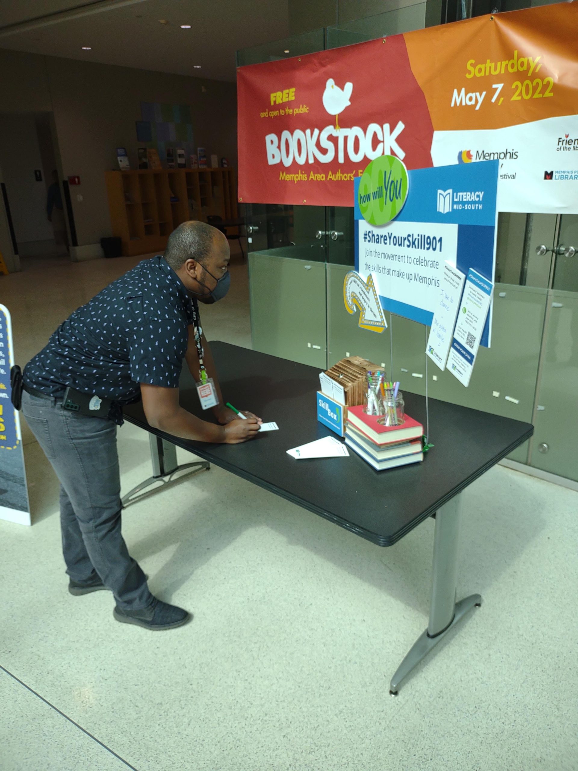 Memphians have many ways to share their talents. From May to January, 18 Memphis libraries are hosting bookmark stations, where participants may write or draw their skills on a bookmark. They may share their bookmarks on social media (@LiteracyMidSouth on Facebook and Instagram; @LiteracyMSouth on Twitter), share their skills via text or voicemail at (901) 201-6028, or share their skills on the #ShareYourSkill901 website.