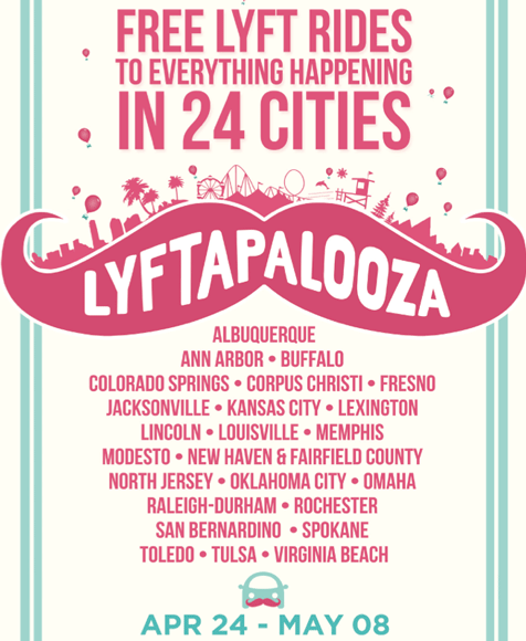 On April 24 the company expanded into 24 new markets, including Memphis, in 24 hours. Lyft now operates in 60 cities, the most U.S. cities of any rides-on-demand platform. Its new markets include Albuquerque, Ann Arbor, Buffalo, Colorado Springs, Corpus Christi, Fresno, Jacksonville, Kansas City, Lexington, Lincoln, New Haven, North Jersey, Oklahoma City, Omaha, Raleigh-Durham, Rochester, San Bernardino, Spokane, Toledo, Tulsa and Virginia Beach.