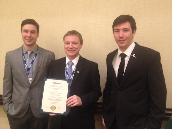 Students are invited to submit technical papers and give formal presentations, which are judged on technical content and clarity of communication by professional engineers. The three U of M students were awarded cash prizes and will advance to the AIAA Foundation International Student Conference, which will be held in San Diego next January.