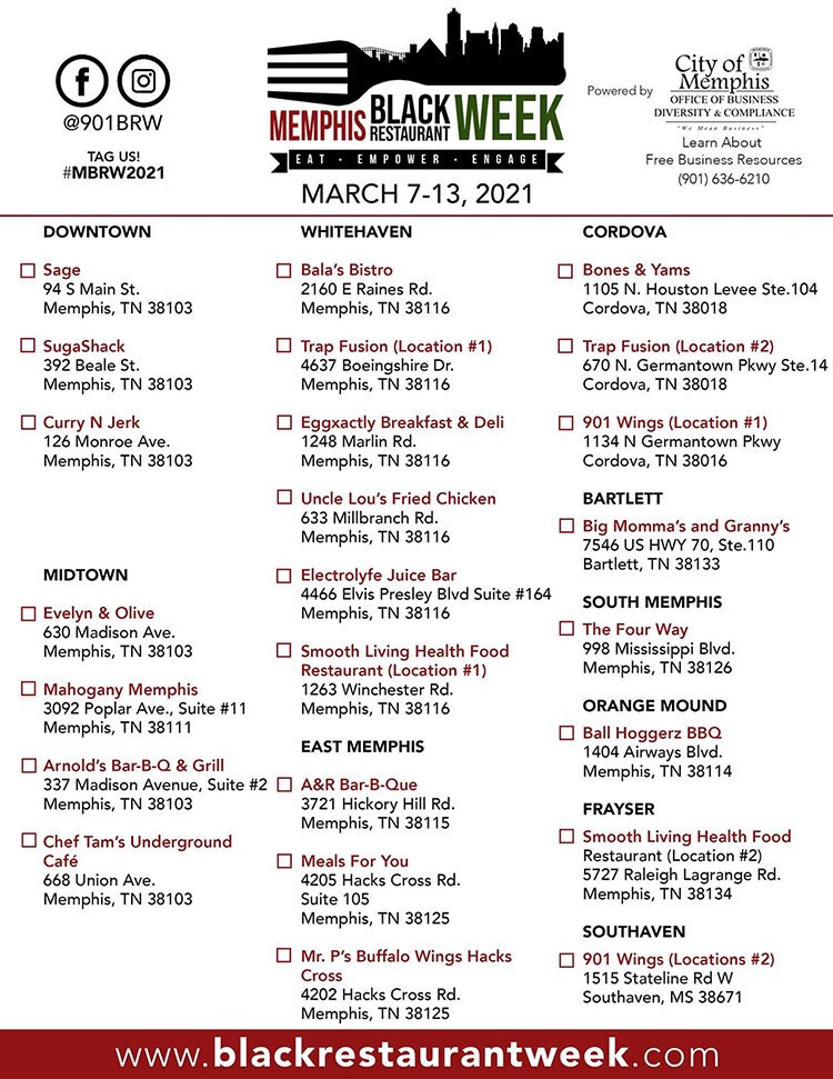 Memphis Black Restaurant Week runs March 7-13 and is supporting 21 Black-owned businesses this year. Hungry diners can order special deals from restaurants located all over the Memphis area.