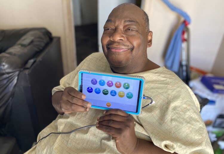 Anthony Walker with his Claris tablet that helps him stay connected.