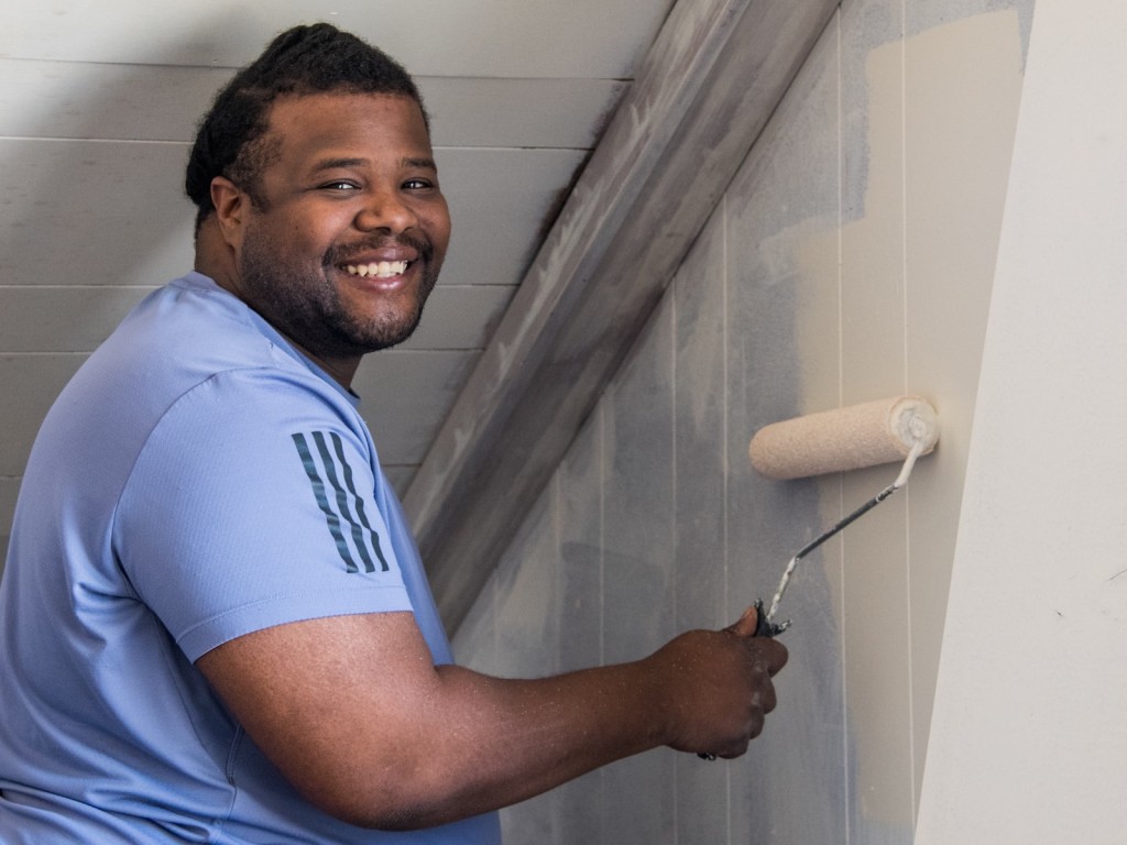The reward is clear for Shari Davis, there with husband Dave, putting a fresh coat of paint on what could be an upstairs bedroom or playroom for kids.