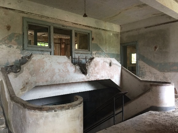 Once I crossed the threshold, I looked up into light flooding through the windows and holes in the building revealing a hefty set of stairs glazed in dirt mounds. I followed the men’s overlapping voices up the stairs. More dirt, more broken windows, but more light. It was beautiful.