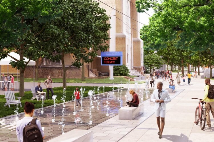 “The Corners is a design change along the Heights Line route. It’s meant to be more of a lingering space — kind of like a gathering public space, as opposed to a path,” says Dane Forlines, director of special projects for the Heights Community Development Corporation.