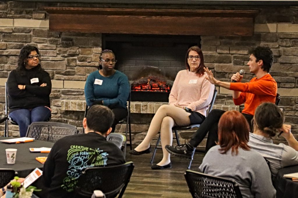 While speakers included ILA collaborators First Steps Kent and Kent District Library along with Michelle Richard, senior advisor to Michigan Gov. Gretchen Whitmer, four ILA parents raising special needs kids made the most powerful presentation. They were Cara Sutliff, a mother of four with a deaf child; Monique Vasquez, mother of an autistic 6-year-old who has mild cerebral palsy and cognitive delays; Seth Torkelson-Regan, stay-at-home dad of a special needs 2-year-old; and Brittany Franks, a mother of sons ages 2 and 4, one of whom is autistic.