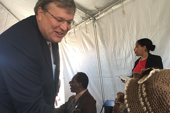 Nearly 100 people filled and surrounded the ceremony tent to listen to speakers. Each shared the importance of commemorating the iconic march and recognized contributions by various organizations to the city and the civil rights movement.