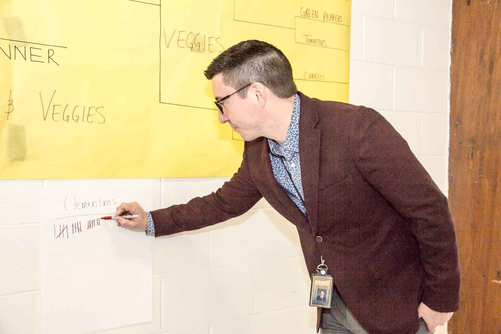 Susan Andress – A Ring Lardner Middle School staffer records points for March Madness.