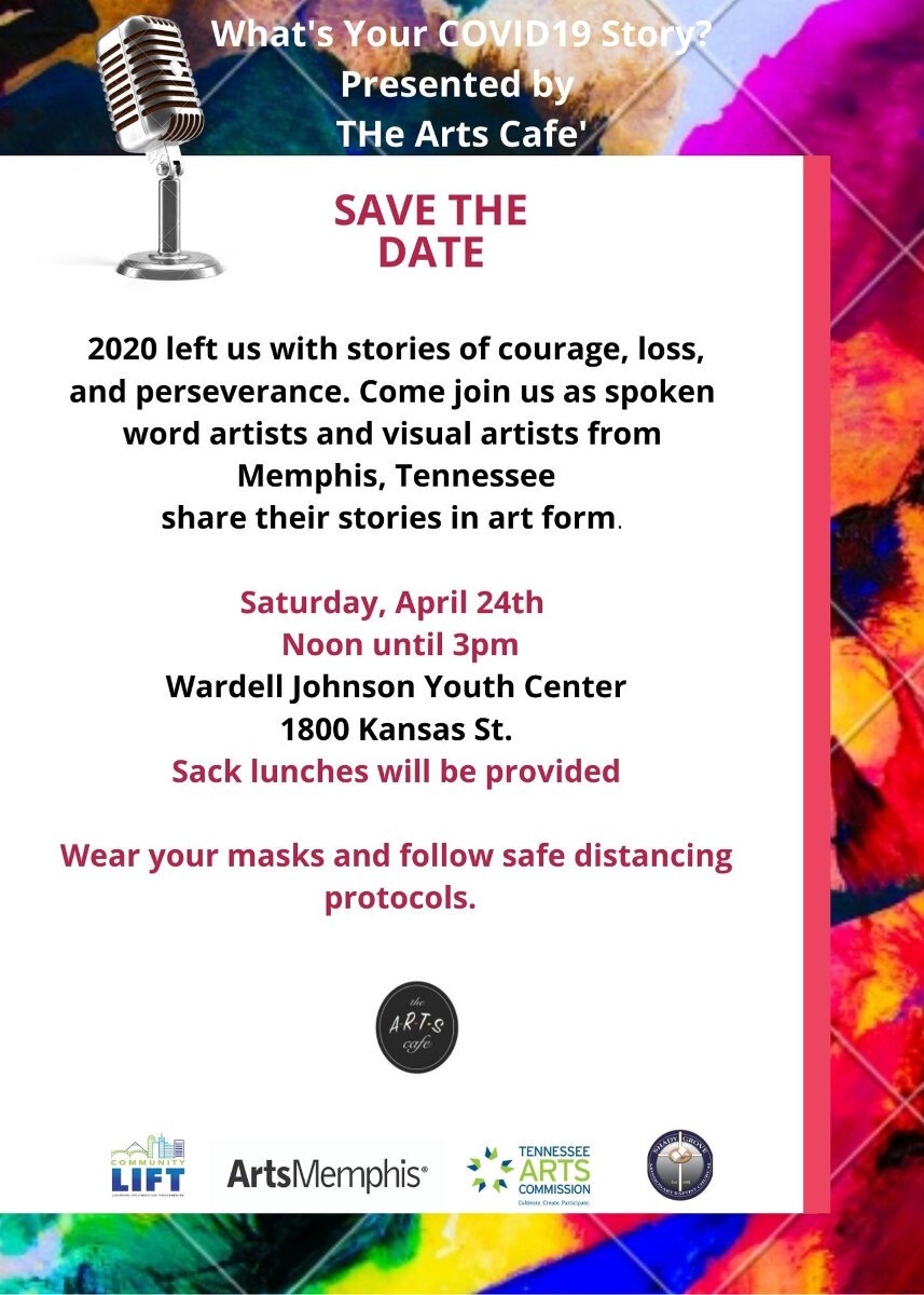 Everyone is invited to attend The Arts Cafe’s upcoming visual art and spoken word exhibition, “What’s Your COVID-19 Story?” The event will be held in the Wardell Johnson Youth Center at 1800 Kansas Street on Saturday, April 24, from 12:00 p.m. until 3:00 p.m.