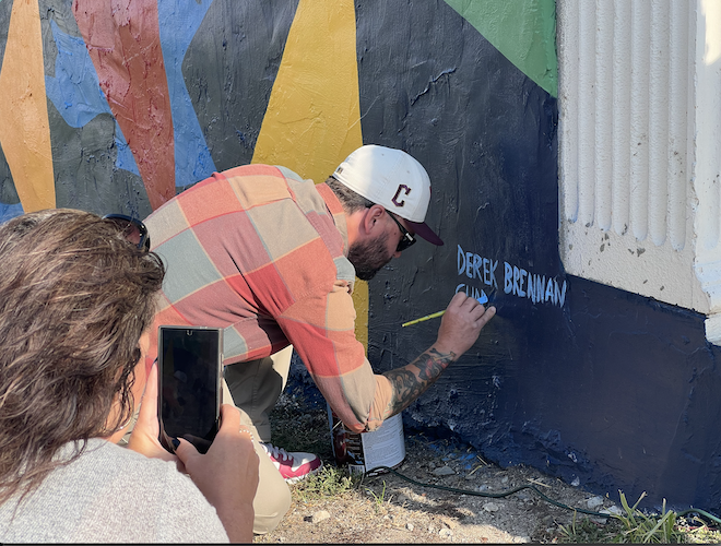 “As a mural artist, I’m always driving through the city searching for potential sites,” Brennan states via the release. “I’ve been staring at this wall for a few years now and I knew if I ever got the opportunity that it would really have an impact on downtown. I just want my work to bring color and joy to people in the community and it’s an honor to be able to leave my mark in the city I grew up in.”