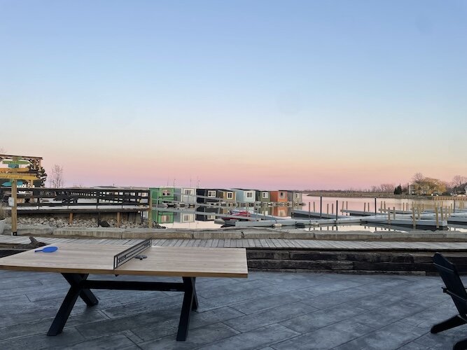 SōLSTAY does not offer alcoholic beverages, but does sit near the Cove at Louie’s Bar and the new Pipe Creek Wharf on River Avenue.