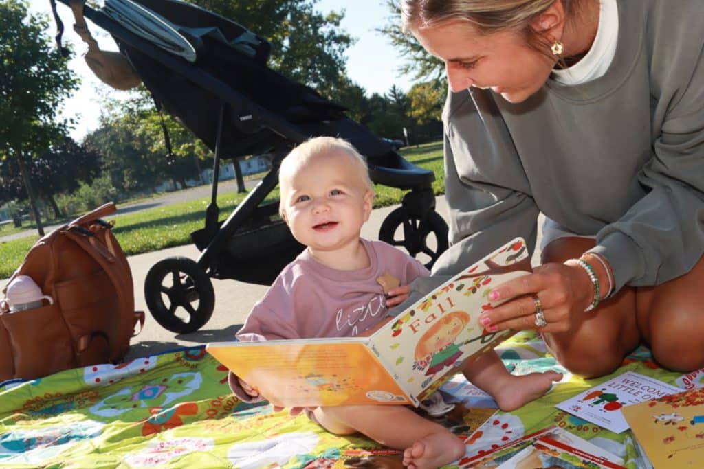 Photo of infant with book by Tommy Allen.